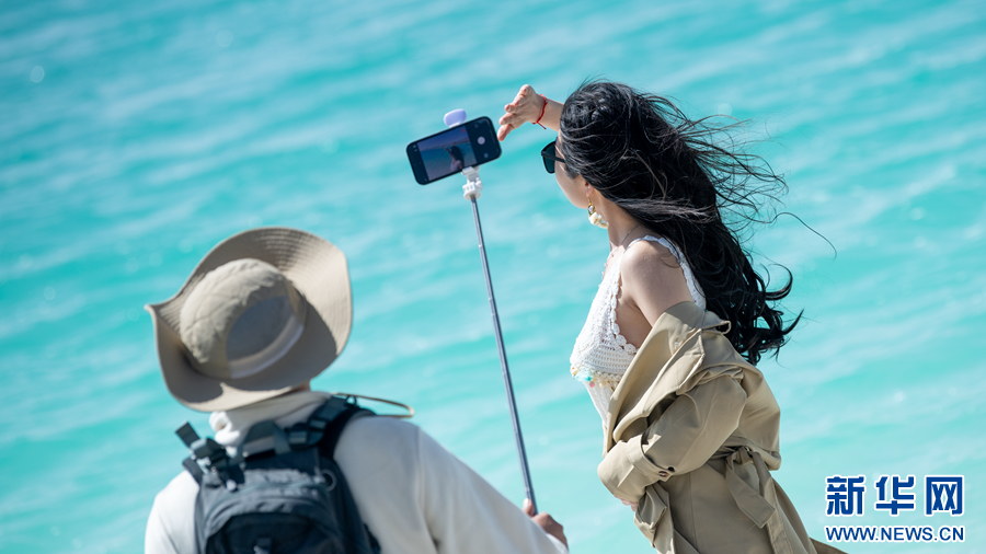 游客在大柴旦翡翠湖游玩。