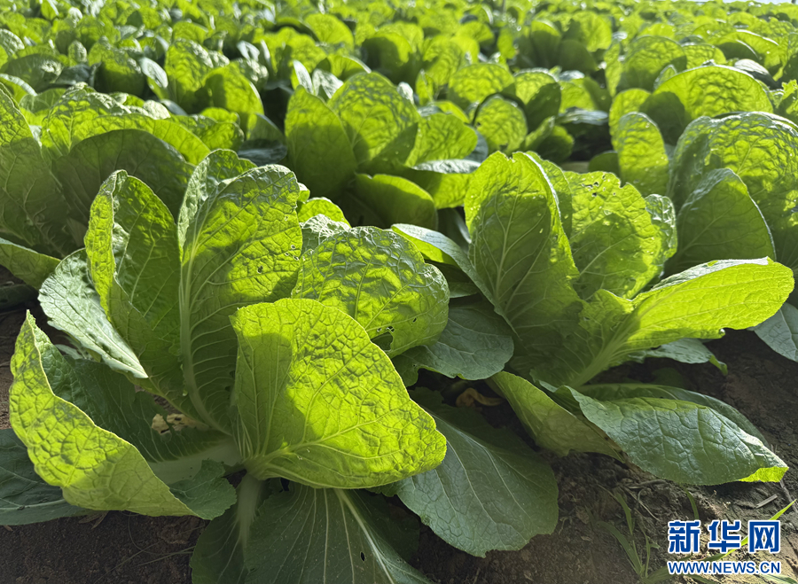 蔬菜大棚里长势喜人的白菜。新华网 鱼昊 摄