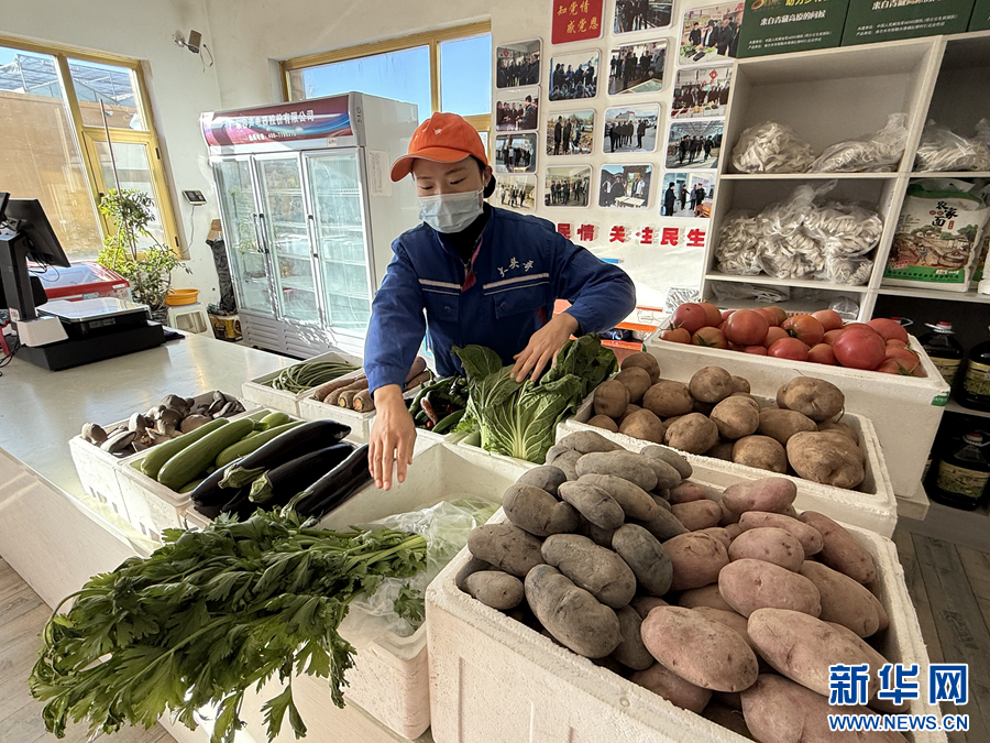合作社工作人员整理售卖的蔬菜。新华网 鱼昊 摄